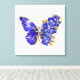 Bijoux, bleu, saphir, papillon aux fleurs pétillantes avec aile décorée de bleu, fleurs précieuses avec feuilles d'or sur arrière - plan blanc.