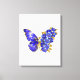 Bijoux, bleu, saphir, papillon aux fleurs pétillantes avec aile décorée de bleu, fleurs précieuses avec feuilles d'or sur arrière - plan blanc.