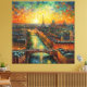 un tableau de Paris de nuit avec la Tour Eiffel en arrière - plan peint dans le style du célèbre peintre néerlandais Vincent van Gogh