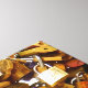Cette toile chic parisienne est décorée de cadenas d'amour du Pont des Arts, le pont piéton de Paris où les amoureux attachent leurs serrures et jettent la clé dans la rivière pour symboliser leur amour. Bien que les cadenas du pont aient été enlevés, les amoureux continuent d'attacher leurs écluses à la clôture du côté de la Seine.