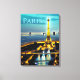 Toile dans une illustration impressionniste de Paris sous un ciel bleu turquoise profond, avec la tour Eiffel illuminée de jaune doré
