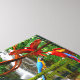 Une forêt tropicale avec de belles cascades et des feuillages de jungle offre un refuge sûr pour ces perroquets colorés au paradis. Photo réaliste, cette peinture à l’huile numérique met en valeur les meilleures images de la nature de nos amis à plumes.