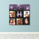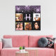 Un cadeau unique ou un plaisir pour vous de célébrer sa vie avec un collage de 5 de vos propres photos, photos. Personnalisez et ajoutez une lettre monogramme. Un arrière - plan noir élégant. Décoré avec de la poussière de parties scintillant en faux violet. Le nom est écrit avec un script de style moderne écrit à la main.