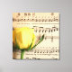 Partition et notes musicales avec une belle rose jaune posée sur le dessus. Un cadeau parfait pour le musicien dans votre vie.