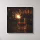 A sparkler flickers inside a glass of whiskey on a dimly lit bar counter, surrounded by a hazy backdrop of liquor bottles that enhance the festive mood