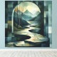 sérénité Invitation dans votre espace avec ce paysage abstrait avec une rivière qui coule encadrée par une courageuse arcade géométrique. Entourée de montagnes escarpées et d'arbres nus, la composition mélange des tons vert tendre et terreux avec des textures complexes, créant profondeur et tranquillité. Parfait pour les intérieurs modernes, minimalistes ou d'inspiration nature, cette oeuvre d'art sert de pièce maîtresse pour les amateurs d'art à la recherche d'un équilibre entre beauté naturelle et design abstrait.