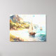 Paysage lumineux avec voiliers en mer. Graphique informatique, effet de peinture.