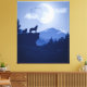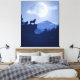 Loup hurlant à la lune paysage bleu 2D. Ce sera une belle édition pour votre muraille de loup.