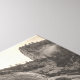 Une photo de paysage en noir et blanc présente des montagnes vertigineuses partiellement masquées par une épaisse couche de brouillard dans le parc national Yosemite à la vue du tunnel. Les montagnes sont rocheuses et escarpées, avec de la neige visible sur les sommets. Une cascade descend sur l'une des parois rocheuses. Le brouillard recouvre une forêt dense d'arbres à feuillage persistant, créant une atmosphère mystique et sereine.