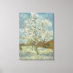 Peach Tree rose de Vincent Van Gogh, huile sur toile 1888, est un tableau paysager d'un jeune pêcher en fleurs planté en rang dans un verger enfermé dans une clôture rustique contre un ciel bleu pâle. Peint à l'aide de bracelets courts de couleurs mixtes collés côte à côte, avec d'épais traits de couleur d'huile d'impasto dans les zones plus claires, l'image saisit la lumière, l'atmosphère et le caractère des arbres fruitiers florissants dans un motif paysager impressionniste. Van Gogh a peint un certain nombre de ces études d'arbres fruitiers et de vergers alors qu'il travaillait à Arles dans le sud de la France. Vincent Van Gogh (1853 - 1890) était un peintre hollandais du mouvement post-impressionniste connu pour son dessin audacieux et expressif, ses coups de pinceau tourbillonnants et ses couleurs intenses et rehaussées. Au début de l'âge adulte, Van Gogh a travaillé comme marchand d'art, enseignant et pasteur avant de reprendre l'étude à temps plein de dessin et de peinture à la fin de la vingtaine. Influencée par Rembrandt, l’école des Réalistes du XIXe siècle et Barbizon, les premières peintures de Van Gogh présentaient des études sur les ouvriers et les paysans dans des tons de terre sombres. Déménageant en France en 1886, Van Gogh rencontre les innovations surprenantes des peintres impressionnistes et commence à appliquer leur approche de la couleur et de la matière, qui se poursuit dans le style mature pour lequel l'artiste est le plus connu. Van Gogh a produit des centaines de dessins et de peintures, dont des portraits, des paysages, des natures mortes et des peintures à fleurs, et de nombreux autoportraits qui sont devenus une influence dominante sur l'art moderne du 20ème siècle et en ont fait l'un des artistes les plus populaires de tous les temps.