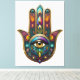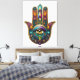 Toile Peacock Colors Hamsa w/ Gold Third Eye