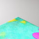 Des cœurs aquarelles roses et jaunes colorés sur un fond bleu aqua grunge ressemblent à une mer pleine d'amour.