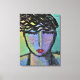 Mon acrylique abstrait funky sur le portrait en bois d'une femme profondément dans la pensée