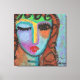 Ma peinture acrylique abstraite funky sur OSB d'une femme avec des bangs bouclés est imprimée sur toile enveloppée