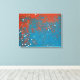 Peinture orange vif et peinture aqua texturée abstraite avec des éclats blancs