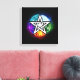 Pentagramme lumineux dessiné de façon artistique avec cinq éléments magiques, eau, terre, feu, astral, air sur arrière - plan noir. Pentagramme de Wiccan. Wicca