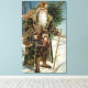 Une charmante toile vintage où le Père Noël marche à travers la neige.
