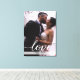 Customisez cette toile étirée avec votre photo mariage préférée. Personnalisez avec vos noms et votre date spéciale. Une police élégante, script et tendance utilisée pour le mot "Amour". Un cadeau parfait pour les jeunes mariés.