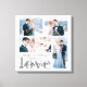 Créez un collage photo de souvenir imprimé pour les jeunes mariés avec 4 de vos photos ou images de mariage préférées et de couple. Le design comporte le titre FOREVER LOVE ou LOVE FOREVER et personnalisé avec les noms de la mariée et du marié et la date du mariage dans une couleur gris argenté modifiable contre une couleur arrière - plan blanche suggérée. MODIFICATIONS : Les styles et les couleurs de police de texte peuvent être modifiés pour correspondre aux couleurs de thème mariage. Fait un cadeau d'anniversaire mémorable aussi. Contactez le concepteur AVANT LA COMMANDE pour obtenir de l'aide sur la modification/personnalisation de la conception ou pour transférer la conception à un autre produit via Zazzle Conversation ou makeitaboutyoustore@gmail.com.