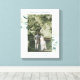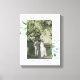 Galerie botanique élégante sur toile mettant en vedette votre photo de mariage préférée encadrée de feuilles d'eucalyptus et de verdure avec une touche de bleu et des paillettes de faux or sur un fond lavis aquarelle pastel. Au-dessus, vos noms sont inscrits en écriture et en dessous figurent la ville, l'état et la date. Un design simple et rustique idéal pour un mariage d'été. Affichez votre photo de fiançailles préférée sur toile lors de votre réception ou offrez-la en cadeau à un jeune couple pour leur premier anniversaire de mariage.
