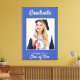 Un script blanc faire-part de remise de diplômes de photographie de classe moderne. Le design comprend un script blanc "Graduate" sur une photo à l'avant et deux photos à l'arrière et un modèle pour remplir les détails sur les plans de l'université de l'étudiant. Les deux côtés sont bordés d'une fine ligne blanche et l'arrière - plan peut être personnalisé avec la couleur choisie.
