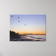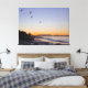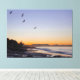 Une belle photo de plage océanique sur toile avec une photo originale prise par AB à Byron Bay, Australie. La photo montre des oiseaux volant au coucher du soleil et un beau paysage de plage de surfs dans les tons pastel de bleu, rose et orange. Un cadeau parfait ou un décor maison pour créer une sensation d'été balnéaire.