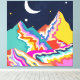 "Chromatic Peaks : Nocturnal Symphony" capture la beauté majestueuse d'une chaîne de montagnes sous le ciel nocturne, où des couleurs vives dansent à travers le paysage.