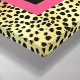 Créez une touche de glamour avec cet élégant 24x24 pouces noir et or cheetah imprimer cheveux et la toile de boutique de beauté enveloppé avec une silhouette dorée d'une femme aux cheveux longs ondulés. Qui peut résister à une paire de chaussures branchées rose chaud avec des arcs? Elle admire son reflet dans un miroir de vanité. Personnalisez ce design poster de animal chic en ajoutant le nom de votre salon de coiffure et de beauté et styliste certifié esthétique ou coiffeur. Impression plate, NON métallique réfléchissant.