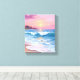 Pink Pastel Skies | Ocean Watercolor Blue Beach Waves Canvas Painting