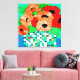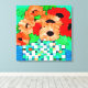 Toile Pixel Art Enveloppé Orange Fleurs Rouges