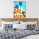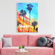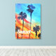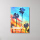 Plage de coucher de soleil avec palmiers art original de Sacha Grossel. Coucher de soleil rouge et orange rêvant d'art sur le thème de la plage dans un style original aquarelle. Surf thème coucher de soleil.