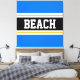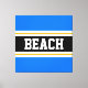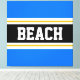 Ce design sportif coloré présente un texte BEACH en gras à l'intérieur d'une large bande horizontale de centre noir avec des rayures blanches et jaunes dorées contre des rayures extérieures bleu vif. Le texte peut être personnalisé.