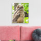 Une image merveilleuse d'une douce poule naissante perchée sur un membre d'érable et regardant la caméra.
