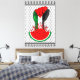 Drapeau de Palestine sur la Révolution Symbole de la liberté sorti d'une pastèque. Dans la Palestine occupée, la pastèque est un symbole de résistance. Avec ses couleurs qui reflètent le drapeau palestinien, le fruit peut être vu des murs de pierre de Gaza aux galeries de Ramallah, ce qui fait allusion à l'histoire politique d'un fruit d'été chéri. Comme la suprématie des occupants israéliens n'a pas permis aux Palestiniens d'exposer leur propre drapeau rouge blanc noir et vert original.