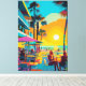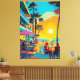 Détendez-vous dans l'énergie vibrante d'une soirée tropicale avec cet art pop audacieux doté d'un café en bord de plage au coucher du soleil. Les couleurs vives et le style d'inspiration rétro captent l'essence des loisirs balnéaires et du charme tropical. Idéal pour les amateurs de pop art, de musique d'été et de déco branchée et colorée pour égayer leur espace.