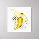 Impression murale moderne funky d'un fruit de banane jaune épluché sur des points demi-tons noirs. Il y a du texte personnalisable en dessous pour ajouter des noms ou un devis