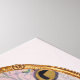 Un tableau numérique d'un Epais dans une robe rose en lime avec colliers en dentelle. Il y a une chaise avec une robe blanche et un casquette qui s'y repose. Un ancien portrait en silhouette d'une tête de canard dans un cadre rond de bois foncé, accroché au mur. Le mur est tapissé de papier peint rose avec des oiseaux tropicaux. L'oeuvre est placée à l'intérieur d'un cadre décoratif arrondi sculpté qui comporte quelques fleurs sculptées. Copyright ©2017 Kimberly J Tilley.
