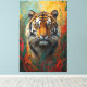 Un dessin de toile audacieux et captivant avec un portrait de tigre artistique dans un style de peinture à l'huile dynamique. Avec son regard perçant et sa présence puissante, cette oeuvre ajoute force, élégance et beauté sauvage à tout espace. Création signée ZR21Designs.