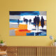 Loose, confident brushstrokes and geometric color fields give the piece a modern, painterly structure. The figures appear anonymous and universal, emphasizing shared experience rather than individuality. There is a sense of transition in the scene—between weather and calm, movement and pause—making the artwork emotionally resonant and quietly powerful.
