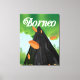Poster de voyage de Borneo Rainforest d'un grand arbre forestier.