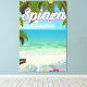 Spiaza, affiche de vacances à la plage croate ornée de palmiers et d'un vieux bateau de pêche.
