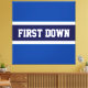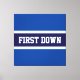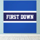 Cette conception sportive de football présente du texte athlétique FIRST DOWN à l'intérieur d'une large bande marine bleue centre, surlignée en blanc contre bandes extérieures bleu royal.