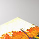 Une femme se promène sur une route bordée d'arbres qui brûlent au feuillage d'automne.