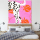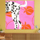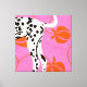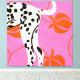 Un imprimé d'art moderne et audacieux qui présente les pattes arrière et la queue d'un dalmate contre un arrière - plan rose vif. Des pêches oranges stylisées et des lignes courbes ajoutent une touche ludique et abstraite. Parfait pour les amoureux de les chiens et ceux qui apprécient les designs graphiques uniques.