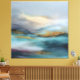 Soft bands of blue, misted gray, and pale light unfold across the canvas, accented by traces of warm gold that suggest distant landforms or shifting reflections. The composition feels atmospheric and unhurried, like a horizon glimpsed through moving air or water. Subtle textures and layered transitions invite close viewing, while the restrained palette creates a calm, meditative presence. This canvas print brings a sense of spaciousness and quiet balance to contemporary, minimalist, or coastal-inspired interiors.