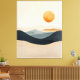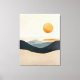 A serene abstract landscape unfolds in soft strata of sand, slate, and dusk-blue, anchored by a warm, suspended sun. The layered forms suggest distant hills dissolving into atmosphere, while the restrained palette creates a sense of stillness and balance. Subtle texture and gentle gradients invite slow looking, making this canvas print a calm, contemplative presence—ideal for modern interiors seeking warmth without noise.