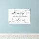 Citation de famille/toile enveloppée "Là où la vie commence et où l'amour ne finit jamais" La toile brillante de Zazzle est faite d'un mélange coton-poly sans additif et dispose d'un revêtement spécial à encres qui protège la surface imprimée contre le craquage lorsqu'elle est étirée. Réalisées en tissage serré idéal pour tout œuvres d'art et photographie, le séchage instantané des toiles en brillant donnent des tirages qui résistent à la décoloration pour très longtemps.