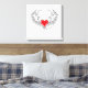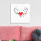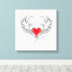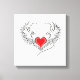 Coeur rouge peint de façon artistique avec ailes d'ange gris, décoré de contour lisse noir.