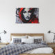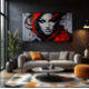 Une œuvre d'art saisissante ! Ce portrait de femme combine le réalisme facial avec des éclaboussures de peinture rouge et noire explosives. Des yeux pénétrants et des traits audacieux créent une atmosphère mystérieuse et élégante. Parfait pour la décoration haut de gamme, les studios et les amateurs d'art urbain et contemporain.