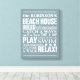 Des peintures murales sur le thème de la plage dans un bleu denim doux et lavé au soleil avec des lettrages en blanc. Customisez avec votre nom de famille et faites connaître à tout le monde les "règles" du beach house qui doivent être respectées. De la construction de châteaux de sable à la recherche de coquillages, l'ordre du jour est de SE DÉTENDRE ! Disponible dans une variété de couleurs.